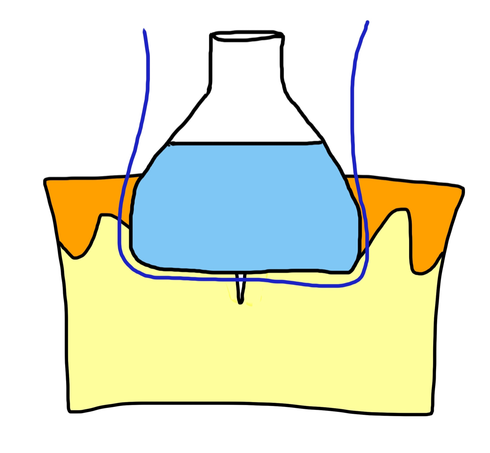 - You will have created a “flask” shape which will ultimately create the eversion effect. Many incorrectly envision a circular shape for the suture, which will fail to evert the tissue.